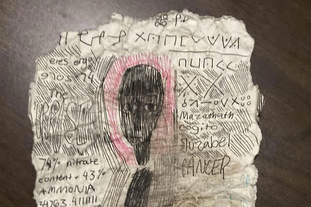 Обнаруженные документы представляют собой помятые листы с неординарными записями. На бумаге можно увидеть оригинальные художественные зарисовки, загадочные символы, а также различные числа и слова, написанные в свободной манере.