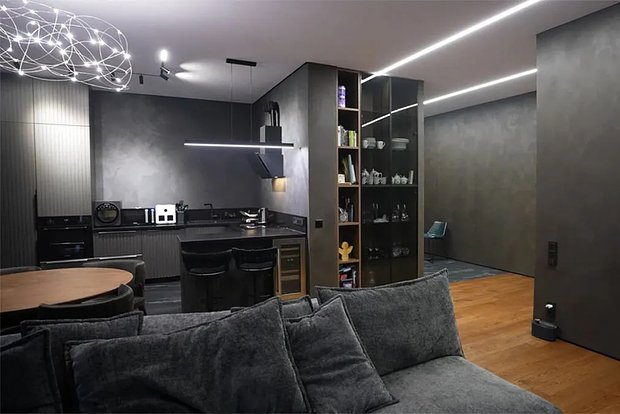 Организация пространства потребовала креативных решений. «Мы месяцами подбирали идеальные оттенки, экспериментировали с фактурами. Из-за тренировок многие вопросы решали онлайн — например, создавали уникальный цвет штукатурки через переписку. Даже черная ванная стала результатом кропотливой работы!» — с улыбкой вспоминает Трусова.
