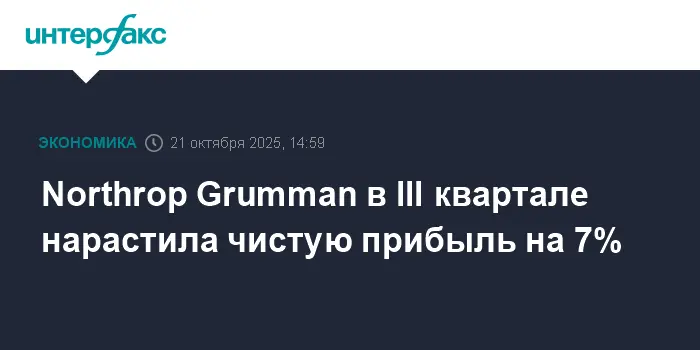 Авиакосмический гигант Northrop Grumman Corp. продемонстрировал уверенные результаты в III квартале 2025 года, увеличив чистую прибыль на 7%, а выручку — на 4,3%. Несмотря на небольшое отставание по выручке от ожиданий, прибыль корпорации существенно превзошла рыночные прогнозы.
