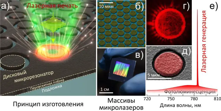 "Применяя ультракороткие лазерные импульсы, мы осуществили печать оптических микродисковых лазеров на тонких перовскитных пленках, размещенных на стеклянной основе. Созданные устройства найдут применение не только в компьютерах нового поколения, но и в широком спектре устройств для сверхбыстрой обработки информации на основе фотонных схем", — пояснили разработчики.