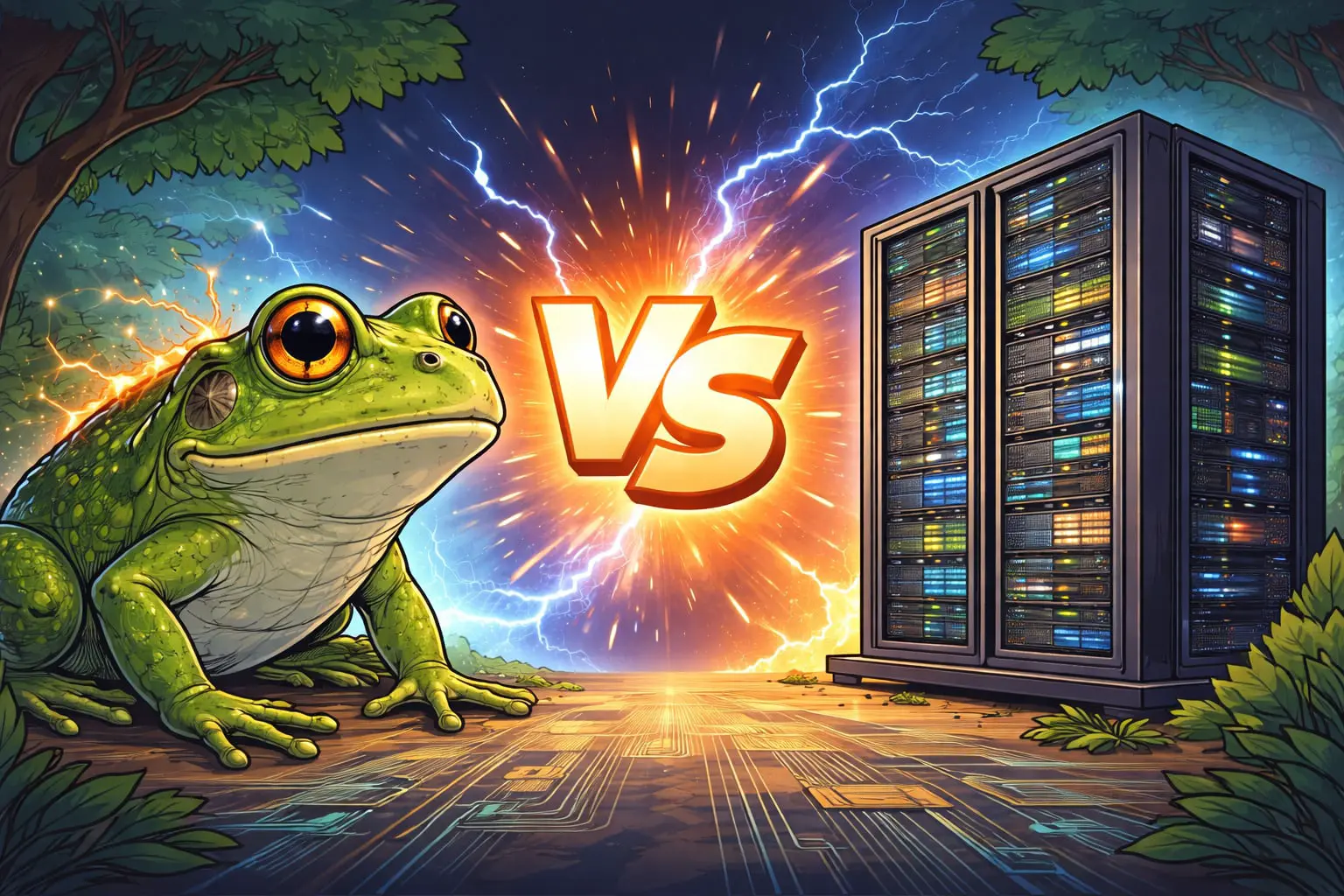 На первом этапе кажется, что технологии побеждают по всем статьям, но биология однозначно лидирует, когда речь заходит об энергоэффективности. Оценить разницу проще простого: мозг лягушки в среднем потребляет всего 1-2 ватт, тогда как суперкомпьютер Frontier требует около 21-23 мегаватт, а El Capitan ещё больше — порядка 30 мегаватт!